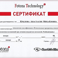 Стаж более 17 лет, награды от Министерства здравоохранения РФ и Саратовской области, международное обучение в Париже, Барселоне, Израиле – всё это подтверждает высокий уровень её профессионализма.