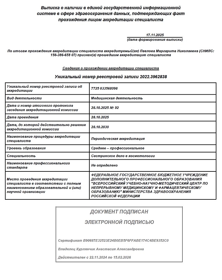 Медицинская сестра по косметологии и специалист по перманентному макияжу